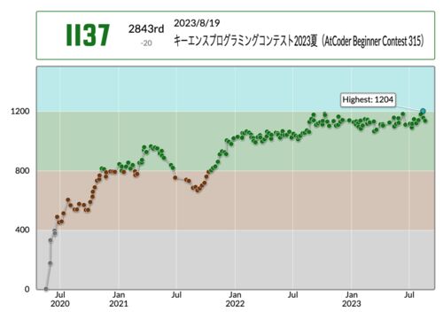 2023/8/12に開催された、AtCoder Beginner Contest 314に参加しました。 atcoder.jp コンテスト前のレートは1180。今回水パフォの上の方が取れれば、十分入水できるというところまで来ました。 今まで何回も入水目前で跳ね返されてきましたが、今回こそ入水…