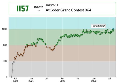2023/5/21に開催されたAtCoder Grand Contest 062に参加しました。 atcoder.jp 未だ緑コーダーの身ゆえ、今回もRatedで参加することはできませんでしたが、Unretedでも参加だけはするという精神で挑みます。 ここ最近のAGCは3回連続0完という、ひどい状態…